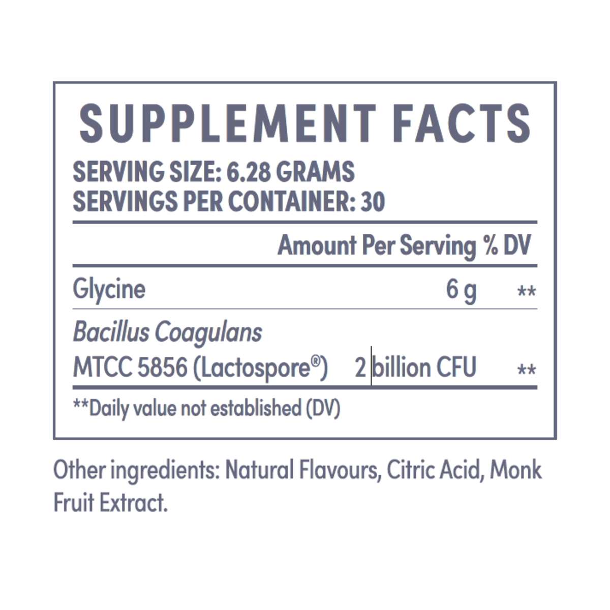 Contains 2 billion CFU of Bacillus Coagulans Probiotics (heavily researched for IBS) plus 6 grams of glycine for gut soothing and healing.