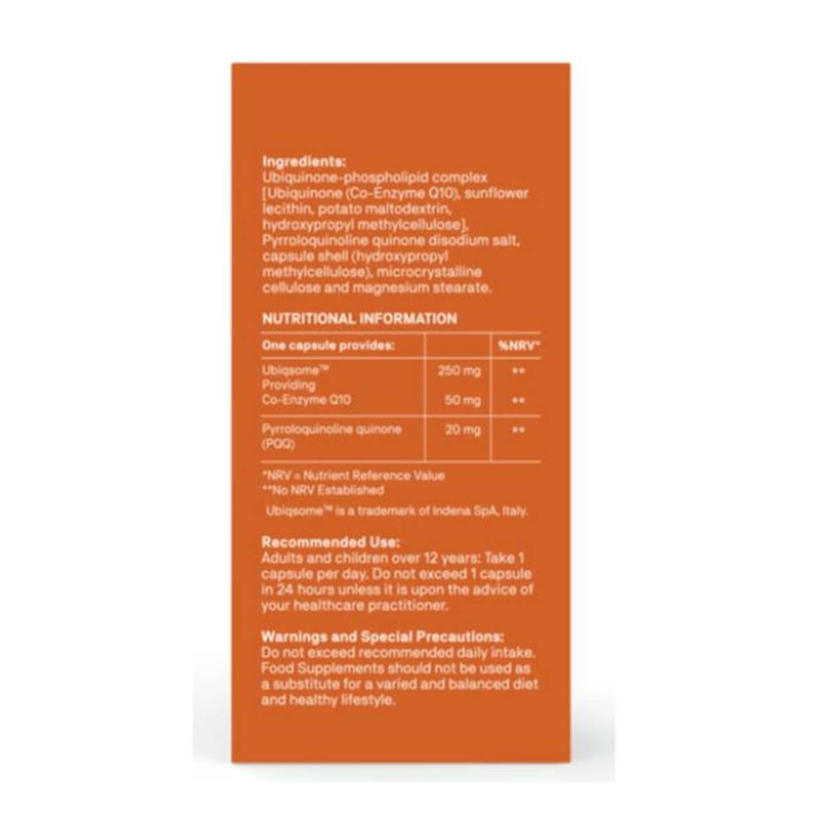 Utilises a first of its kind advanced delivery technology which significantly enhances the absorption of CoQ10 in the body and directly increases the concentration of CoQ10 where it counts – within the cells. In addition to this we have further enhanced this product with a dose of pure “PQQ” Pyrroloquinoline Quinine produced through a natural fermentation process. This forms a powerful combination to support mitochondrial and cellular health.
