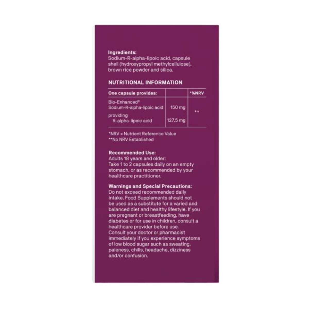 • Bio-Enhanced® Sodium R-alpha-lipoic acid 150mg